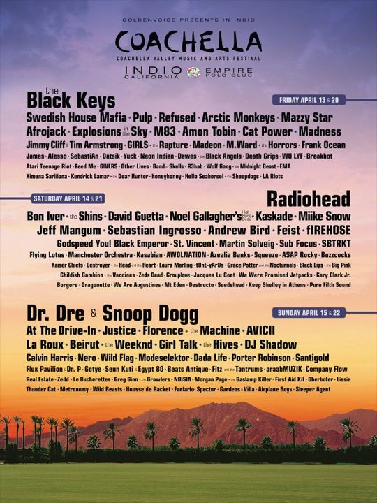 Sunday seems pretty light to me. I’d love to see Goldenvoice add The Stone Roses.